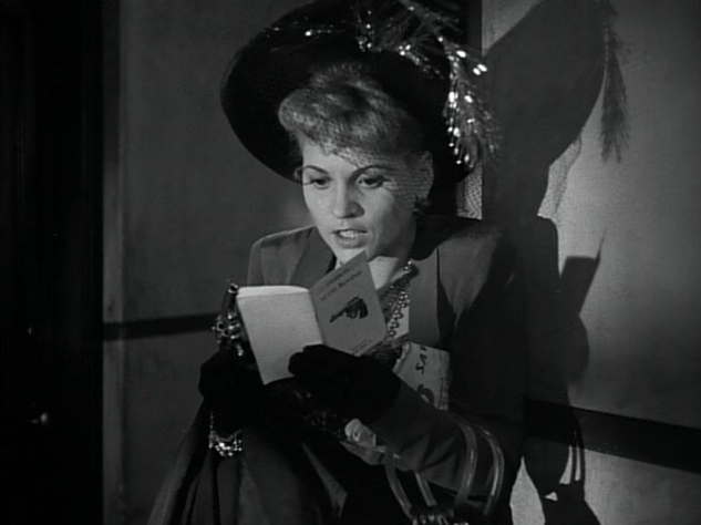 Another stereotypical character is Kip (played by David Wayne), the musician, songwriter, and neighbor. He is a typical playboy who takes the first chance he sees and makes a pass at Amanda. It makes me laugh when he pledges his love to her and says that it would have been the same toward any woman who lived just across the hall – a wolf in sheep’s clothing. And a final stereotypical role represented here is the dumb blond other woman. Of course I am referring to Beryl Caign and we need not mention any example other than when she is on the witness stand answering questions about the attempted murder she was present at, “…and then I heard a noise” she says, describing the moment in question. Adam asks “What kind of noise?” and she replies, “like a sound.” Need I say more?
