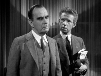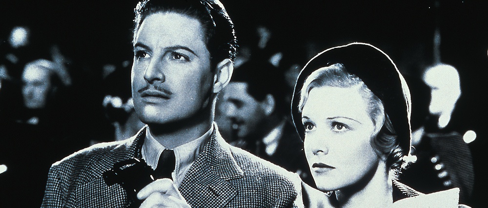 The Hitchcock signature is clear throughout The 39 Steps. The killing of the girl by the knife and the way she is found – reminiscent of countless other murder scenes in countless other Hitchcock films. The landlady who finds the body screams in horror but her screams are replaced by the whistle of a train as that scene fades to the next. That train then takes on the familiar setting for several scenes in the film. It is where Hannay (Robert Donat) first meets Pamela (Madeleine Carroll) and where he is able to read newspaper stories of the murder that occurred in his apartment the day before. (Newspapers are another familiar item in many Hitchcock films as he uses headlines and stories to aid in the narrative). And the use of a newspaper is again seen in the best visual scene in this film. The scene when Hannay goes to the shack where he finds the married couple, the kind wife and not so kind husband. This scene has a really nice exchange between Hannay and the wife that is just another example of the power of the visual versus the vocal in that the entire exchange is done with looks and glances.