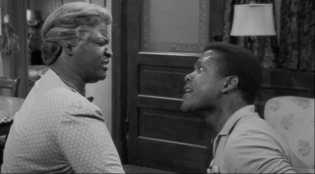 There is one scene in the film between Walter and his mother that’s particularly memorable to me and is my favorite of Mr. Poitier’s in this. Desolate and lost, Walter Lee is sitting in a bar he escapes to all too often as the tough going gets tougher. Lena shows up unexpectedly to get her son. When Walter sees her, in a matter of seconds, a myriad of emotions are visible on his face without his speaking a word – despair, shame, defeat, anger, sadness. Gorgeous acting. I wonder how this wonderful scene, all those feelings, came across on the stage.