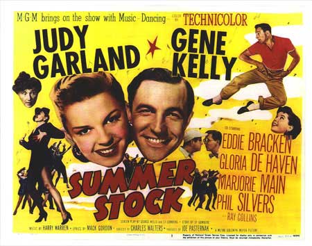 In Summer Stock, Judy Garland stars as Jane Falbury, a small-time farmer trying to make ends meet who soon finds her homestead invaded by a theatrical troupe.  Jane’s sister, Abigail (played by Gloria deHaven), who’s not cut out for farm life aspires to be an actress and got mixed up with “show-biz” types and fell in love with Joe Ross, the actor in charge of the troupe.  Joe and the troupe are broke and need a stage where they can preview their show.  Star-struck Abigail offers up the farm.  What ensues is both fun and funny helped along by a wonderful cast, which includes Marjorie Main, Eddie Bracken and Phil Silvers.