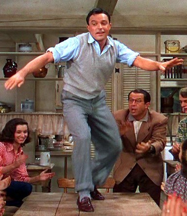 The blogosphere is all abuzz this week in celebration of the life and work of Gene Kelly.  Today would have been his 100th birthday.  I just had to do something to honor him.  By way of a simple tribute to him and my (sentimental) favorite of his films, I jump on the Gene Kelly love bandwagon.