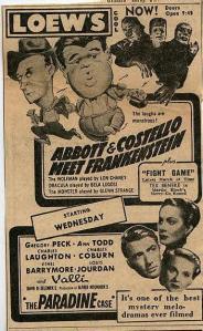 Anyway – production on Abbott and Costello Meet Frankenstein began on February 5, 1948. The film was originally titled, The Brain of Frankenstein but it was changed to convey the message that the film contained comedy as well as horror – a combination many, including critics, fans and even the actors were a bit leery of.