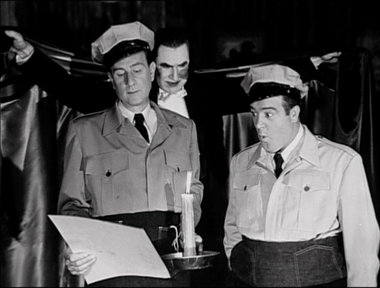 As Wilbur hangs up, thinking Talbot called long distance to have his dog make growling noises into the phone, McDougal, the House of Horrors owner is waiting to see if his two crates have arrived. McDougal’s eager to display “the greatest attraction the House of Horrors ever had,” remains of both Count Dracula and the Frankenstein Monster.