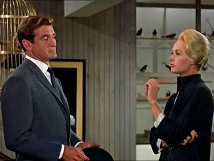 I love almost everything about The Birds apart from Rod Taylor. Seriously – why was he in this film playing Jessica Tandy’s twenty-something son when he looked about forty-five? Everything else about this movie is wonderful, even Tippi. It’s scary, it’s well-constructed. I love the prim, competent way TH navigates her way painstakingly to the house with those lovebirds, and the way Hitchcock lets that play out in its own time, not afraid it will flag. But Rod Taylor? Rod. Taylor? Sorry, get out of here Rod and go back to your time machine, you’re no more Jessica’s little boy than I am. 😉