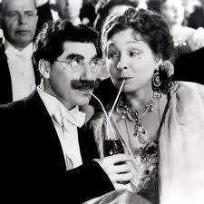 Groucho and Margaret’s roles as the romancer and the object of affection, respectively, was maybe too successful because Groucho remarked in later years that people often thought that they were married in real life. When actors can make people think that one has a relationship off-screen and on-screen, then that is truly the mark of great chemistry and acting. One picture truly encapsulates and embodies Margaret Dumont’s work with The Marx Brothers, and especially Groucho. It is the fairly famous picture of Groucho and Margaret Dumont drinking out of the same Coke bottle with two straws while eyeing each other. I think that picture sums up the relationship for the two characters they portrayed but also the relationship between Groucho and Margaret-two partners who enjoy each other’s company and need one another.