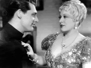 Worthy of note, by the way, is the fact that Lou doesn’t engage in any sexual activity. I mean, given the outrage that She Done Him Wrong caused, one would think it would be more overt sexual situations that caused it. All she does is kiss two men ever so briefly and we know she “give in” to advances for diamonds but we don’t see it. We all have our weaknesses, after all. Interestingly, the only scene during which she comes close to “having” Captain Cummings (Cary Grant), where she lures him in for the kill but then she fights him off just at the nick of time. It’s like a spider luring her prey into the web. She’s hot for him, innuendos and body language say so (um…plus it’s Cary Grant) but she wants to be sure he’s fully wrapped before she “allows” him to go for the kill – at that point in the film, anyway. Cummings leaves kiss-less and Lou closes the door behind him and says, “well, it won’t be long now.” A woman who excels at a man’s game – for the times anyway as the The Code enforcers saw it, I assume.
