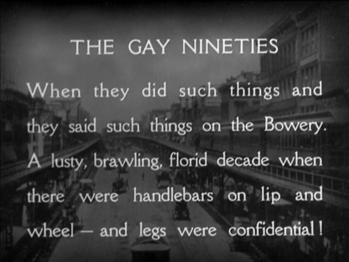 The first thing that occurs to me regarding the code while watching the film is in one of the early scenes of the saloon. As the camera pans by saloon patrons, mostly (clearly) drunk men who are enjoying their drink, already to the point where it is difficult for them to hold their hands steady and the beer is sloshing and spilling all over the place. The Production Code states that the use of liquor is to be used in a film if it is required by the plot. Certainly, the message of a “good time” would have been clear with a lot less liquor and a lot less spillage. It is over-the-top and I believe this would have been downplayed had it been done after The Code was in effect.