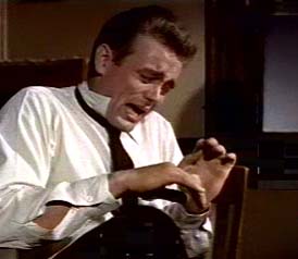 Since I chose to discuss scenes between Terry and Edie from On the Waterfront I wanted to choose comparable scenes from Rebel Without a Cause. However, I didn’t find one. I find James Dean’s performance believable and several scenes in the film very emotional but I have to admit there is never that “WOW” moment for me in this film, with the exception of one. That one being the scene where the father is kneeling with the apron on cleaning the spilled food off the floor. This particular scene is very disturbing, even grotesque in a way. I’d go as far as to say that it actually goes too far in making the point that the father is spineless and domineered. To me Dean is best in this scene – the quiet way he tells his father to get up