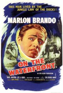 route, to stay far from the limb, so to speak. I chose to compare the two most obvious and, arguably, most renowned of method actors and performances. Marlon Brando in Elia Kazan‘s, On the Waterfront (1954) and James Dean in Nicholas Ray‘s, Rebel Without a Cause (1955). One performance I love and another that I don’t particularly like. As an aside, I’m thinking now I may have probably served this assignment better if I’d chosen East of Eden, which was directed by Elia Kazan as was On the Waterfront, instead of Rebel. Perhaps that would have been a “fairer” assessment. But I didn’t because it’s always been my impression that at the time of their releases, Dean in Rebel had a bigger impact than East of Eden, although some of that was probably due to the fact the former was released a month after James Dean’s death. I might as well also mention my professor in that course has always been a huge admirer of James Dean’s performance in Rebel without a Cause, which is something I considered when I made my film choices. I have always tended toward going against the grain a bit. I ‘m not partial to Dean’s performance in Rebel just as I’m not crazy about the film. All of that out of the way, here is my commentary with views that remain the same for me through the years as I’ve re-watched these films.