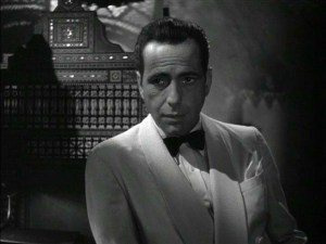 As one other example of the role patriotism plays in Casablanca is the scene when Major Strasser (Conrad Veidt) asks Rick (Humphrey Bogart) what nationality he is and Rick replies, “I’m a drunkard.”  This emphasizes the fact that Rick feels he belongs nowhere.  Perhaps even that his country has turned its back on him since he is unable to return.  There are hints throughout this film that America is seen as oblivious to what is going on in the world at that time, perhaps because, though they were in the war, it was not in their own back yard.  When Rick is waiting for Ilsa (Ingrid Bergman) to meet him at the bar after closing he is in turmoil – the iconic, “of all the gin joints…” scene – and wonders what time it is in America at that exact time.  He says he bets people are asleep all over America just then.  With this he insinuates just this point – that Americans are indeed clueless as to the day-to-day turmoil and fight for survival that the rest of the world was experiencing during that time.  Somewhat ironically is the reality that in America at that time in history had national pride as never before (or since).  The whole country was willing to sacrifice for the greater good thanks to a President who ensured all communications, all industries and all families had one goal in mind – the war effort.