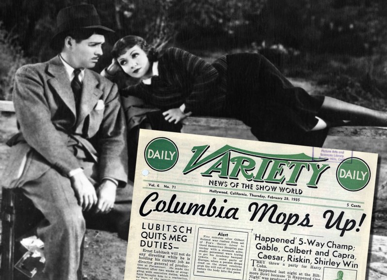 It Happened One Night is one of those films you can watch over and over again and is always entertaining.  The performances are wonderful as is the story.  But the film is also significant for having played an important role in Hollywood history, aside from being the first film to win the Oscar “grand slam” (IMDB).  It Happened has the distinction of giving Columbia Pictures the boost it needed to make the studio a true force and able to compete with the “big boys,”  The Big Five studios –  Paramount, MGM, Fox, Warner Bros. and RKO.  In brief – Columbia Pictures, who produced It Happened One Night, had had a few successes in the early 1930s  but “exhibitors still ranked it 6th in consistency of product.” (Gomery, 2005)  Just three years later, however, the studio would be at the top thanks to the 1935 Oscar sweep of It Happened One Night.