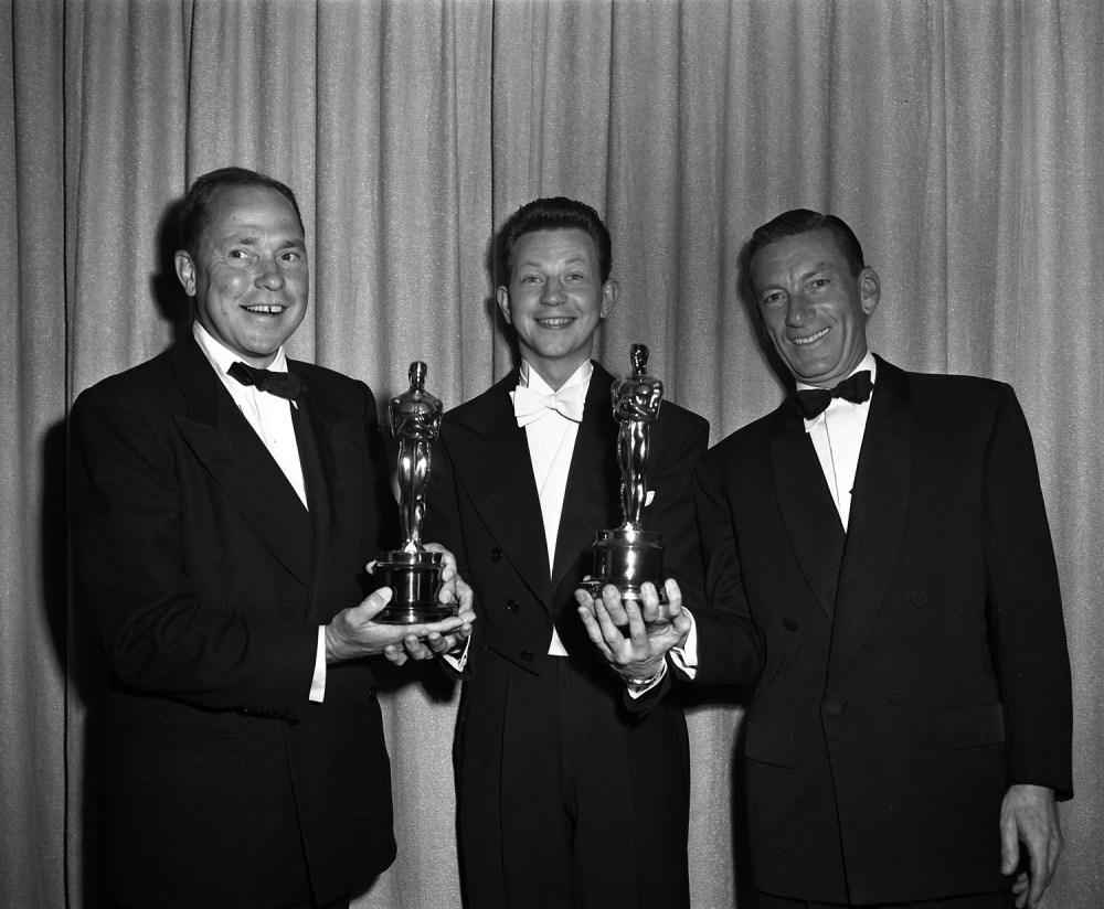 Pictured: Johnny Mercer, Donald O’Connor, and Hoagy Carmichael at the 1951 (24th) Academy Awards ceremony.