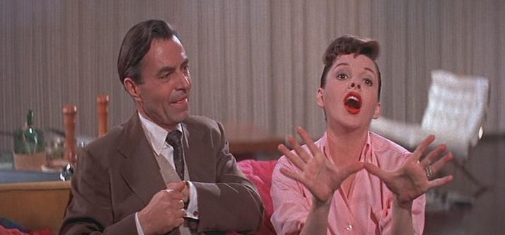 In George Cukor’s A STAR IS BORN (1954), perhaps the best musical drama ever made, in her Best Actress Nominated role as Esther Blodgett/Vicki Lester. An Oscar, by the way, that she deserved to win. People forget or dismiss, it seems to me, she didn’t just sing a song. She lived it, acted it, breathed it. I discuss Judy’s performance in A STAR IS BORN, her best, in one of the first blog posts I ever did. You can access it here if you’re interested. As actress and as performer Judy is unforgettable in this film.