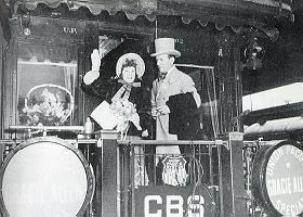 Burns and Allen were always a domestic act, never a topical one that incorporated the serious issue of politics – although Gracie had seriously considered running for Governor of the State of Coma, which she claimed to have lived in for many years. Once in a while George would try to explain a new policy to Gracie but she never quite got it. Or, actually she’d get it but we wouldn’t get that she got it – in her illogical way. Anyway, Gracie’s presidential campaign began as a joke and was supposed to be part of a two-part script on the radio show. Her slogan was, “Down with common sense, vote for Gracie.” When the gag caught on they extended it a few weeks. Then Gracie started making unannounced appearances on other shows to talk about her campaign. CBS joined the promotion full force and the Union Pacific Railroad and the city of Omaha, Nebraska offered to make a “Gracie for President” campaign train and nominating convention. Gracie still wasn’t taking it seriously – although it was always in jest – but when First Lady Eleanor Roosevelt invited her to D.C. as the guest of honor of the National Women’s Press Club, Gracie, as “Gracie” was campaigning as if it was real.