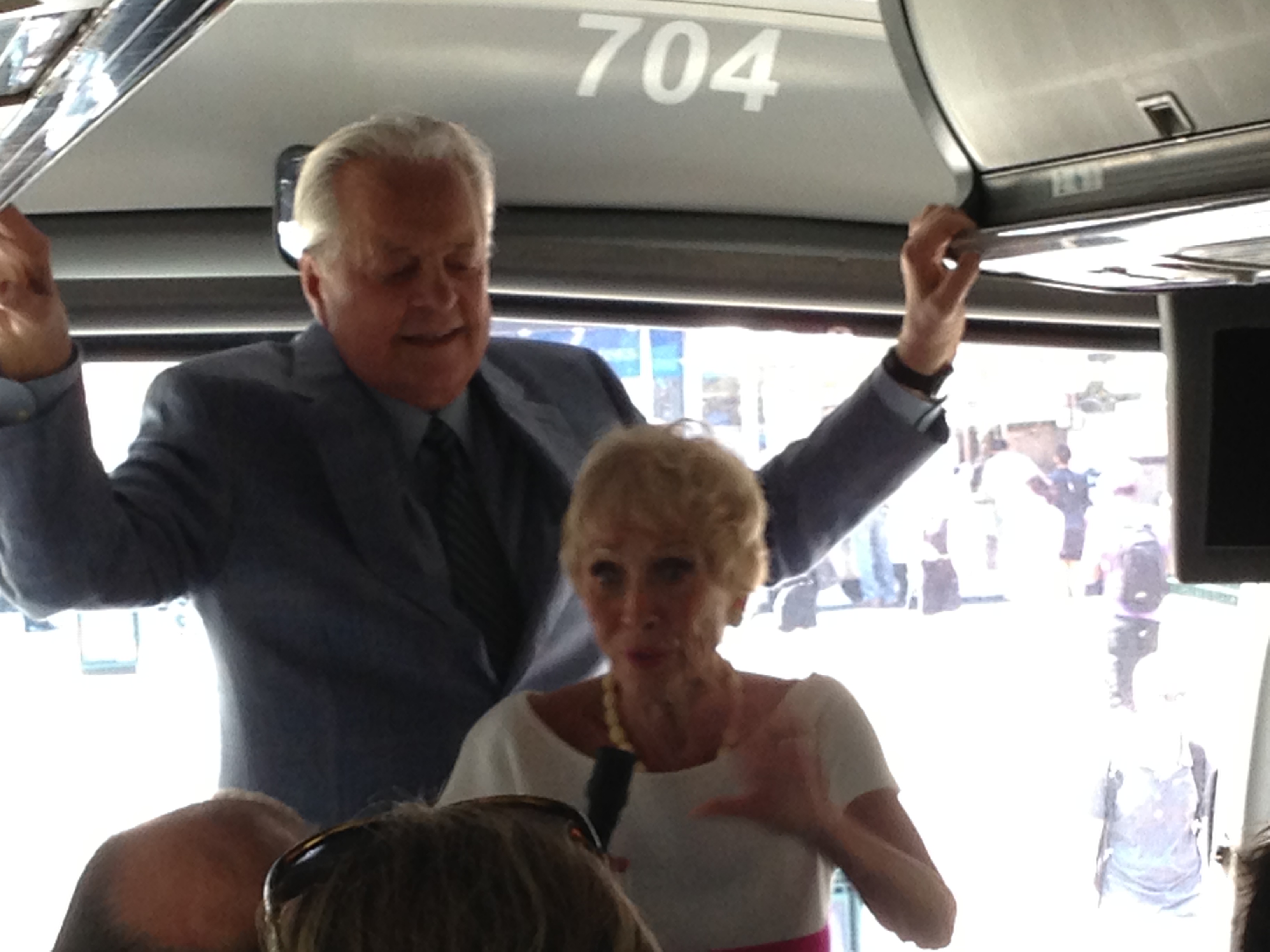All too soon we stopped in front of Zabar’s gourmet foods, another staple in many New York films, where we were treated to a picnic lunch – a special treat for the maiden tour.  The most famous passengers on the bus, Robert Osborne and Jane Powell, left us at this rest stop but took time to take pictures with whoever wanted, as well as taking time to answer questions.  I managed to take pictures with each of them.  They were gracious, friendly and lovely to everyone who approached them, reinforcing the TCM brand in the fact the network takes pride not only in the celebration of film, but in the passion of its fans.