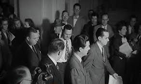 The House Un-American Activities Committee (HUAC), a committee of the U.S. House of Representatives, was formed in 1938 to investigate allegations of communist activity in the country.  Using its power to subpoena, HUAC set its sights on the Hollywood community forcing “chosen” individuals who worked in the film industry to testify in high-profile hearings before Congress.  The Committee’s “investigation” came to a head in 1947 when verdicts were handed down on ten men who refused to answer questions.