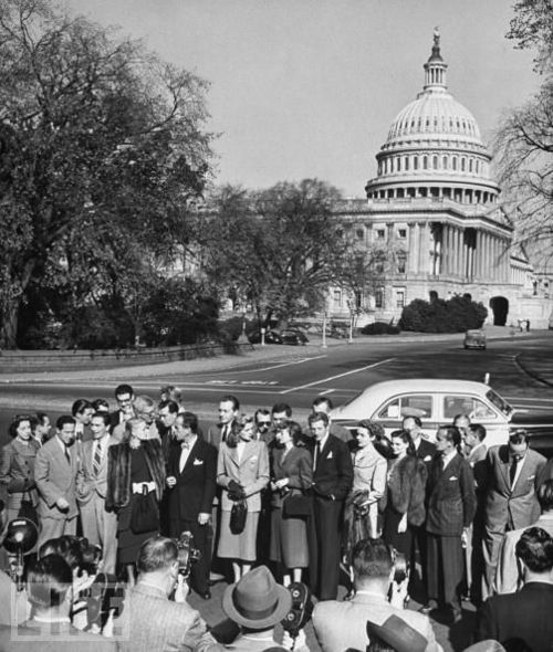 Hollywood contingency of the Committee for the First Amendment arrives in DC to protest the HUAC hearings