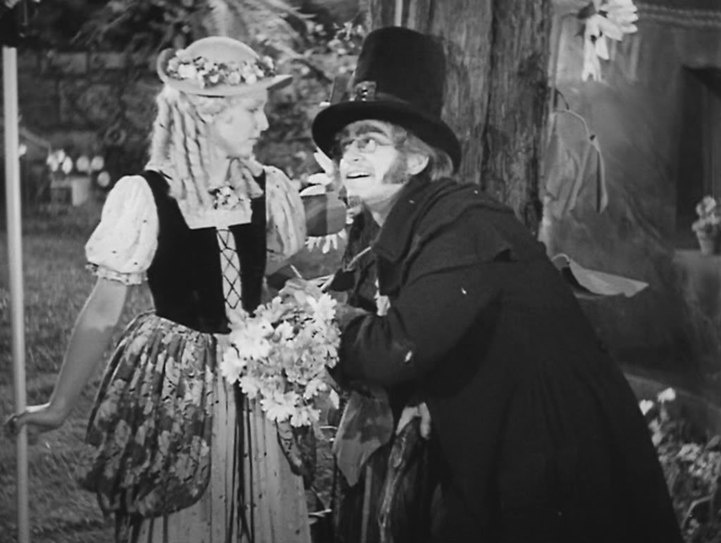 As entertainment I still buy into all of it including the triumphant March that saves the day in March of the Wooden Soldiers.  It always thrills me.  And the creatures that scared me as a child still (kinda) do as I watch the movie today.  Although the Bogeymen have never scared me as much as Silas Barnaby.  He still makes me shiver. I place him right up there next to the flying monkeys in The Wizard of Oz on my list of scariest things ever!  He’s as wicked as they come.  Proper credit must be given to Henry Brandon, in his film debut, for his performance as Barnaby, reportedly the part producer, Hal Roach had the most difficult time casting.  Hal Roach “discovered” Brandon when he attended a stage production in which the actor appeared.  In the production, Henry Brandon played a sadistic, decrepit old man, exactly the type Roach was looking for in Silas Barnaby so he set up an interview with the actor and was surprised when into his office strode a six-foot-five inch, twenty-one-year-old man. (IMDB)  I too was quite surprised to learn this.  Brandon gives a great performance as Barnaby.  I fear and hate him!