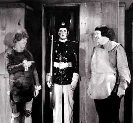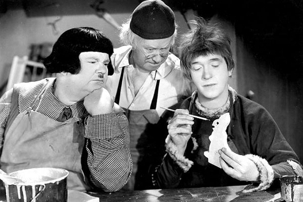 As far as Laurel and Hardy go, they are their usual selves in the film, which means they are supremely entertaining.  The pair is one of my favorites excelling at both physical humor and the usual schtick that often revolves around an innocent kind of “dumb and dumber” theme.  March of the Wooden Soldiers plays to the pair’s strength and features a series of routines that compliment the main story.  I never tire of their optimistic humor as evidenced in the Christmas gift scene I described above.  It’s silliness, but it’s funny as heck.  Laurel and Hardy characters are so good-hearted one can’t help but love ’em.