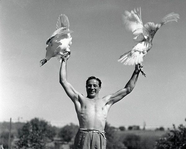 30 Sep 1934 — Max Baer, world?s heavyweight champion turned ?Gentleman Farmer? while awaiting the start of his new movie contract. Spending several weeks on the ranch here with his Manager, Ancil Hoffman, Max gathered his Thanksgiving dinner early, as shown by the above picture. — Image by © Bettmann/CORBIS