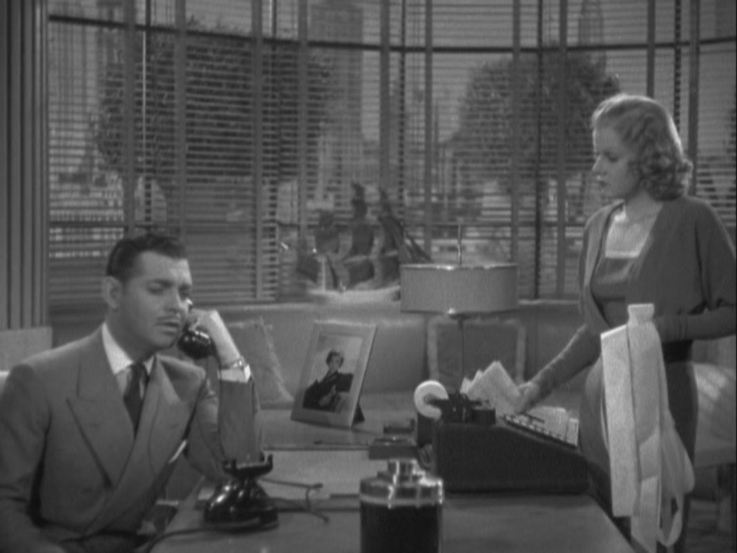 Myrna’s explanation of the role reversal plays well in the movie in that the “other woman” is straight-laced, honest and hard-working, not the typical throw-herself-at-the-man, gum-chewing, airhead. If only Linda had a bit more fight in her the reversal would have been more effective, culminating in a real battle.  Then there’s the fact that Gable’s character, VS, never gives an inkling that he is the tiniest bit romantically or sexually interested in Whitey.  He is, throughout the movie, head over heels in love with his wife so it never really seems as though he’s interested in choosing between them.  So, when Whitey confronts Linda it’s a dud.  Whitey is declared the victor without a fight, yet she still gives up. She has the spine to confront her boss’ wife, the man she’s in love with, makes a heartfelt speech but it all culminates in a let-down – a great scene for Harlow, but a let-down.  Linda all but shrugs and as far as I know VS has never declared his love for Whitey.  The entire love triangle is missing the sharp angles.