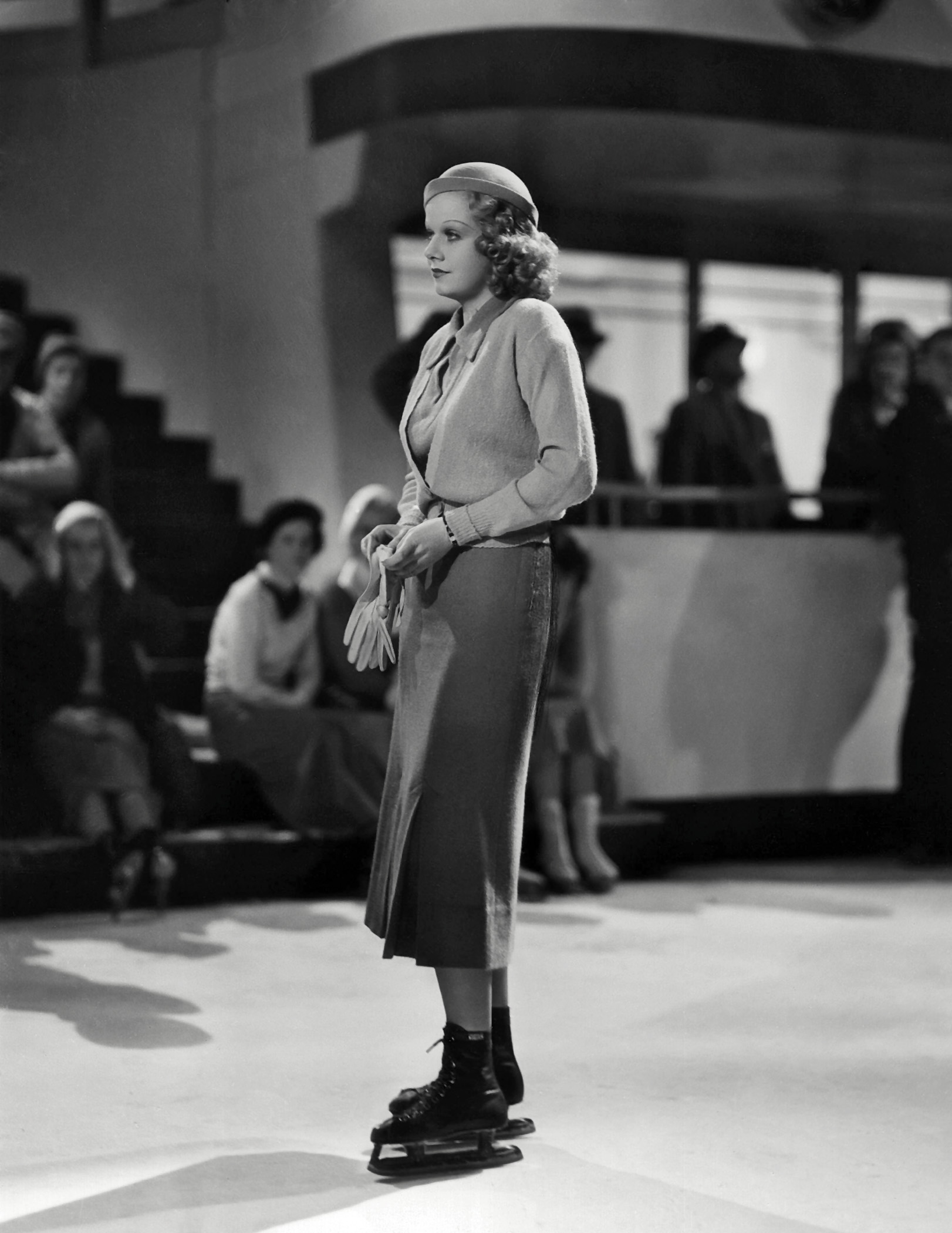 1936: Jean Harlow (1911 – 1937) is on ice-skates in a scene from the film ‘Wife Vs Secretary’, a star comedy drama directed by Clarence Brown for MGM.