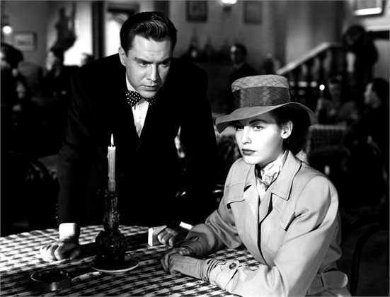 The 1946 film, directed by Robert Siodmak is true to the Hemingway story depicting, nearly word-for-word, the entire original source in the film’s opening sequence, which comes to a total of about ten minutes of material.  Screenwriter, Anthony Veiller, with uncredited assistance from John Huston and Richard Brooks, expanded the story to a 90-minute film and earned an Academy Award nomination for the effort.  Veiller’s script allows for a slow, methodical yet suspenseful tale replete with shadowy figures and beautiful black and white photography enhanced by a gorgeous score by Miklos Rozsa.