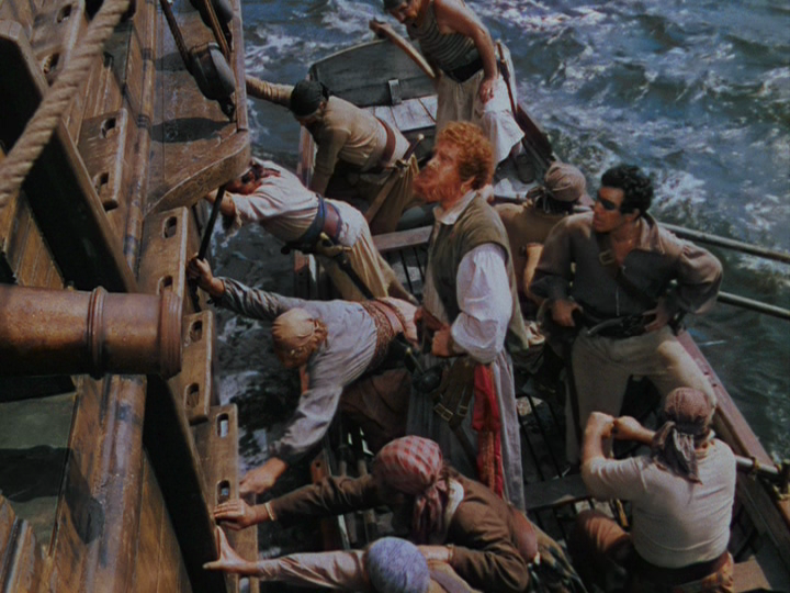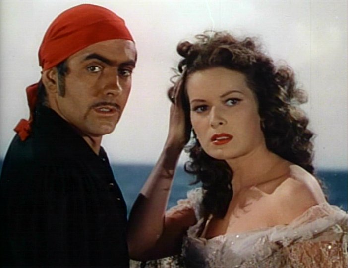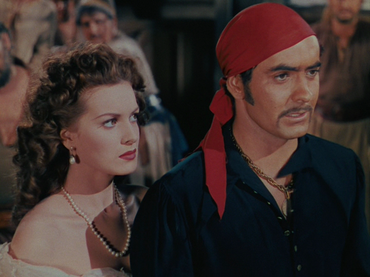 The Black Swan won an Oscar for Best Cinematography, Color for the talents of Leon Shamroy who deserved to get that and more. The commentary that’s part of the bluray’s extra features discusses the process of 3-strip Technicolor used, which clearly made vibrant color literally jump from the screen as had never been seen before. In truth, I really don’t care how they did it, just that they did it. Whether contrived with lighting or color strips or what-have-you the movie fills the senses. The sets are fantastic, the mood terrific. This is Technicolor in all its glory.