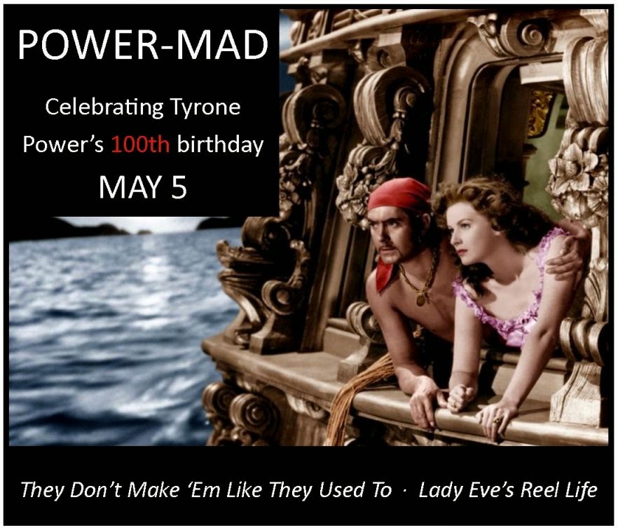 I post this commentary as part of the Power-Mad blogathon hosted by Lady Eve’s Reel Life and They Don’t Make ‘Em Like They Used To, which will feature commentaries and retrospectives covering Tyrone Power’s life and work in celebration of what would have been his 100th birthday on May 5, 2014. Be sure to visit the host sites to read about the power of Power, one of the greatest movie stars the silver screen will ever feature.