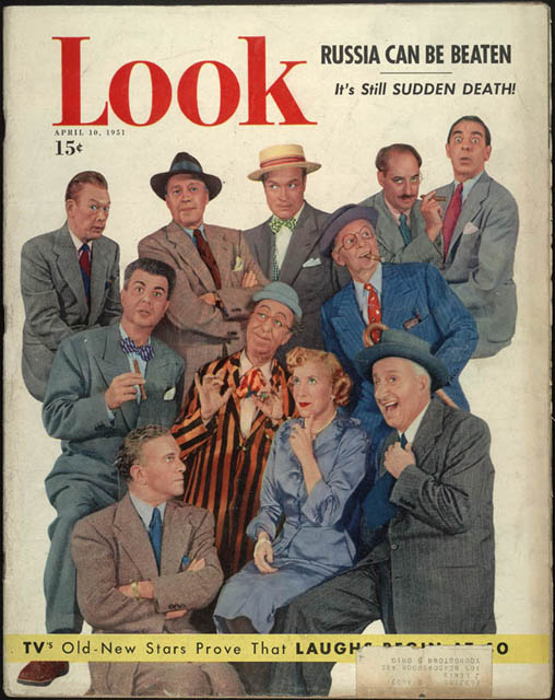 Look Magazine paid tribute to the former vaudevillians who occupied so much of the television schedule in the early 1950s: Top row (l-r): Fred Allen, Jack Benny, Bob Hope, Groucho Marx, and Eddie Cantor. Middle row: Ken Murray, Ed Wynn, and Bobby Clark. Bottom row: George Burns, Gracie Allen, and Jimmy Durante.