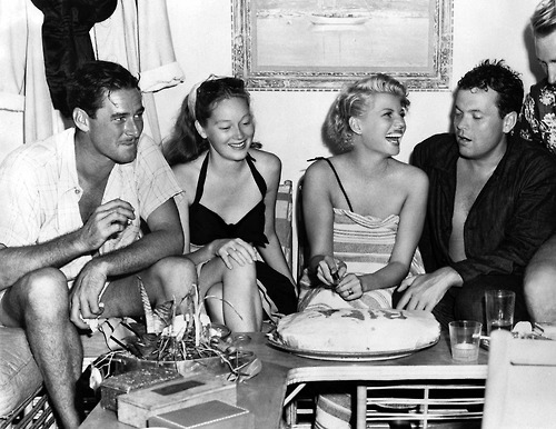 23rd November 1946, Film Stars (left to right) Errol Flynn with Mrs Nora Flynn, Rita Hayworth and her husband Orson Welles relax together on holiday in Acapulco, Mexico (Photo by Popperfoto/Getty Images)