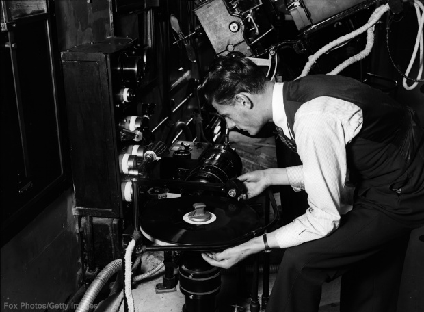 October 1928: Putting the background music to a film on at the Piccadilly Theatre. (Photo by Fox Photos/Getty Images)