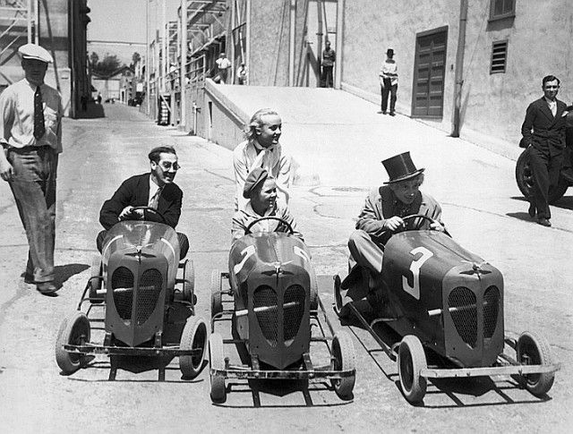 Carole Lombard & Jackie Coogan (center) with Groucho and Harpo on the Paramount lot in 1933