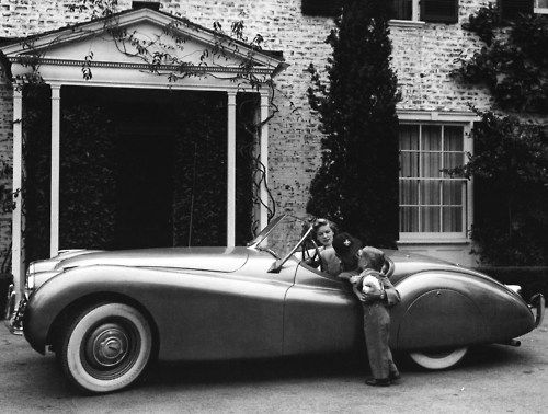 Humphrey Bogart, wife Lauren Bacall and son Stephen and Jaguar