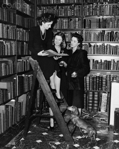 21 Nov 1940 — Betsy Cushing, Mary Cushing, and Barbara Cushing, selecting books in Dr. A.S.W. Rosenbach’s famous library, to be auctioned off for benefit of American Red Cross War Relief Fund. — Image by © Bettmann/Corbis