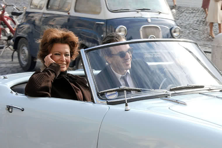 Sophia Loren and Daniel Day Lewis shooting Nine in Rome