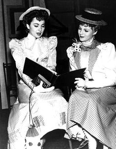 Olivia de Havilland and Rita Hayworth between scenes of %22The Strawberry Blonde%22