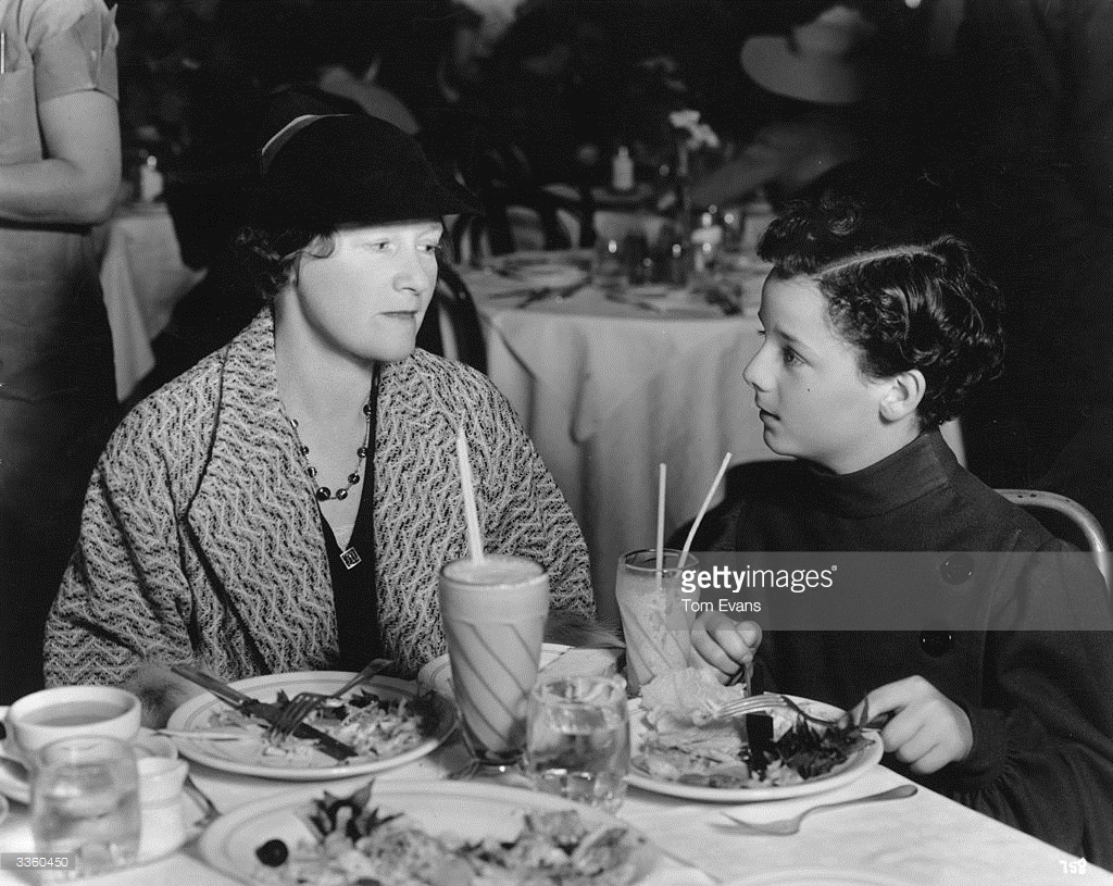 Freddie Bartholomew (1924 – 1992) eating lunch with his aunt Millicent Bartholomew at the MGM commissary