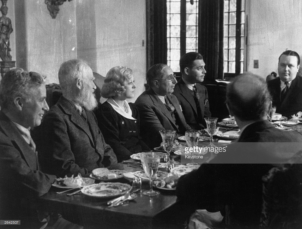 George Bernard Shaw holding court with Charles Chaplin, Marion Davies, Louis Mayer, Clark Gable and George Hearst