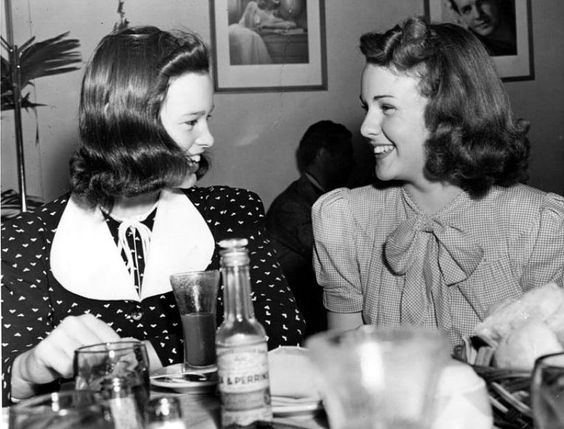 Gloria Vanderbilt has lunch with Deanna Durbin at the Universal studios commissary