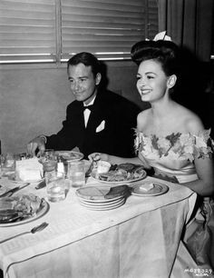 Lew Ayres and Donna Reed have lunch at the M-G-M commissary