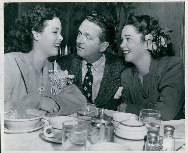 Nancy Gates, Wally Brown, and Margie Stewart at the RKO commissary, 1944