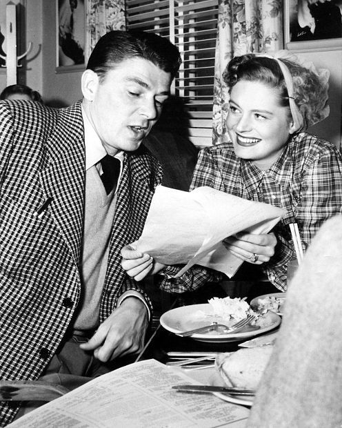 Ronald Reagan and Alexis Smith have lunch at the Warner commissary
