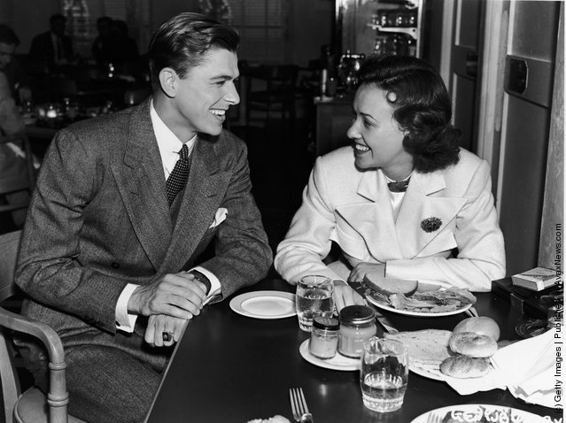 Ronald Reagan and Margaret Lindsay at the WB Commisary