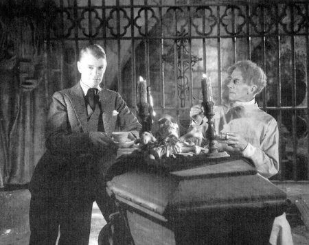 With Ernest Thesiger on set of BRIDE OF FRANKENSTEIN