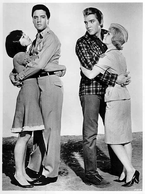 Brunette Elvis with Yvonne Craig and blonde Elvis with