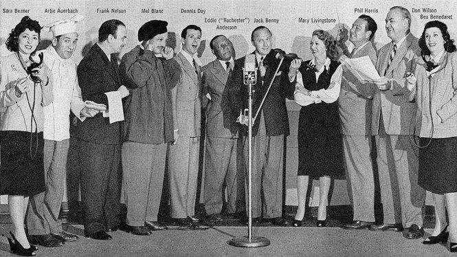 Most of the Cast of “The Jack Benny Show” – Eddie Anderson, Dennis Day, Phil Harris, Mary Livingstone, Jack Benny, Don Wilson, and Mel Blanc