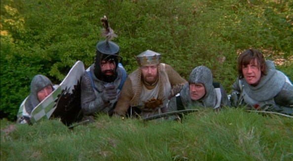 The Knights of the Round Table eventually reunite again and celebrate heartily, but their quest continues to test their skills and bravery. Along the way they encounter dangers such as the Bridge of Death and the Gorge of Eternal Peril. The group is also forced to brave tough elements and manage to survive a year that skips summer. These are hearty, determined men, I tell ya. Eventually King Arthur and his knights are guided to the powerful thrower of fire called Tim the Enchanter, a name ad-libbed by John Cleese when he couldn’t remember the first name of the Enchanter. Tim points them to dangerous caves guarded by monsters wherein the location of The Holy Grail was noted by none other than Joseph of Arimathea of the famous legend noted at the beginning of this post. The inscription, which is supposed to be Joseph’s last words, leads the knights to the Castle of Aaaaarrrrrrggghhh and one wonders if Joseph was in pain and dying when he wrote that or whether it’s the actual name of the castle. In any case, danger still lies ahead for the Knights of the Round Table before they are able to complete the mission handed down to them because accessing Aaaaarrrrrrggghhh proves no easy task. If they are able to complete it that is.