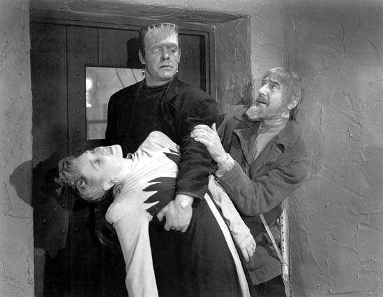 Evelyn Ankers with Lon Chaney Jr and Bela Lugosi in GHOST OF FRANKENSTEIN