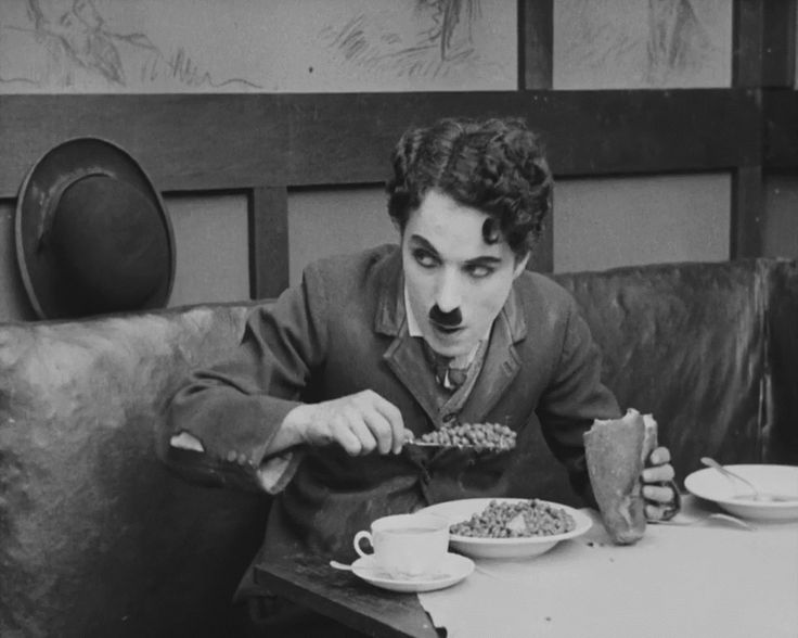 The Tramp sees the girl across the restaurant as he scoops up beans